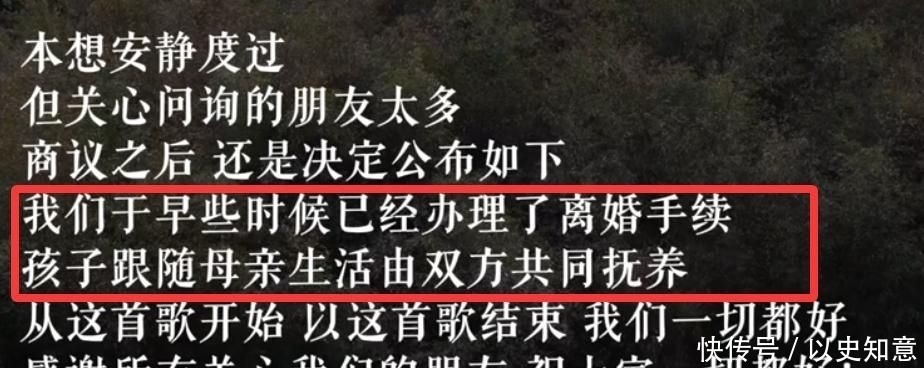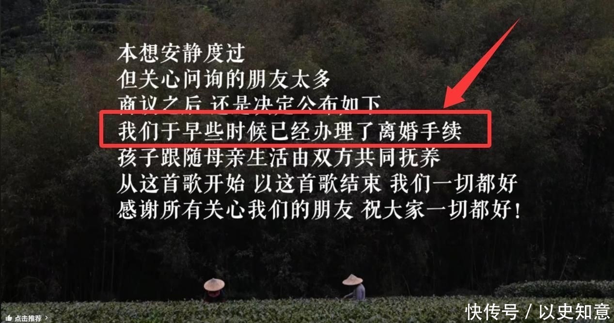 “本想安静度过,但关心问询的朋友太多,商议之后还是决定公布,我们于早些时候已经办理了离婚手续。”